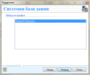 В случая при Dreem Personal системният профил е само един и се казва Dreem15_Personal. С бутон Напред преминавате към следваща стъпка.