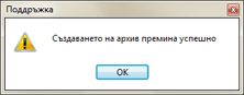 Системата извежда прогрес за архивиране на данни. Времето за архивиране зависи от големината на базата и скоростта на компютъра, с който работите.